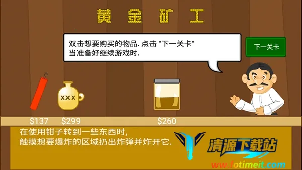 黄金矿工经典版是一款风靡全球的休闲游戏。玩家化身矿工,用抓钩在地底抓黄金等矿藏,还有道具助通关。有单人挑战、双人对战模式,关卡推进难度渐增,操作简单易上手,乐趣无穷。