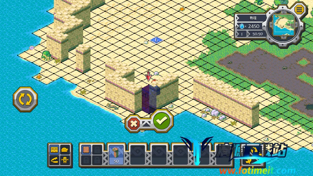 8、如果点击【√】没有反应,那就意味着没有放好,可以点击左方的按钮对围墙进行旋转,然后再点击【√】;