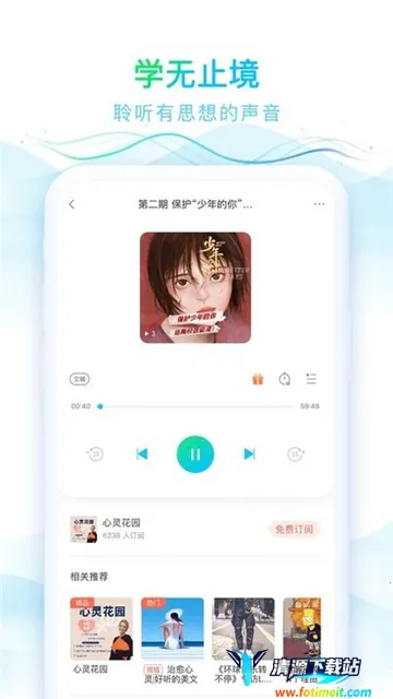 海量节目随心听:涵盖文娱、生活、知识等各类节目。文娱类有晚间心语、脱口秀、相声等;生活类无论你是养生族、时尚咖还是旅游达人、汽车专家,需求都能满足;知识类包含名著、诗词歌赋、商业财经等,让你学无止境。