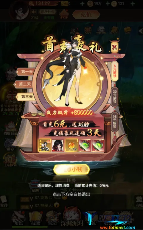 1. 海量福利:开局即可享受千抽福利,助力主角快速觉醒。累充活动丰富,满足条件能申请对应档位奖励,包含大量元宝、英雄经验、高级招贤令、突破石、各类珍稀卡片等。