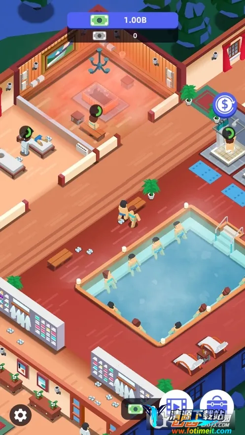 洗浴中心大亨是休闲模拟经营游戏,题材新颖,放置玩法离线也能壮大洗浴中心。画面真实,玩法丰富,要修建区域、升级设施、装饰吸引顾客,做出关键决策,提供舒适服务,打造豪华洗浴中心
