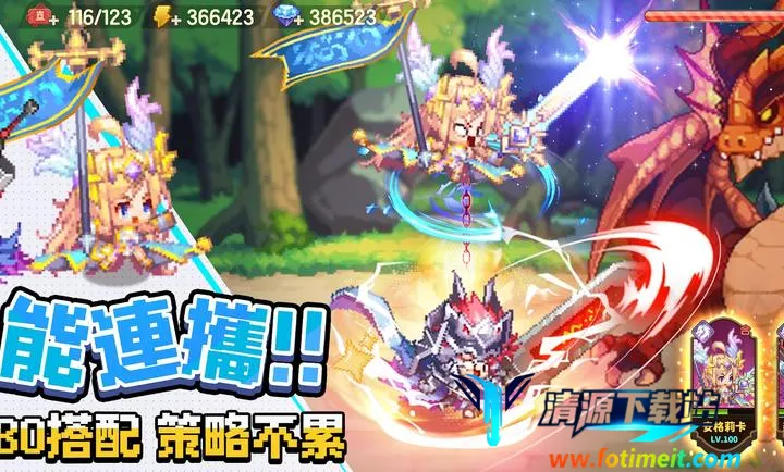 2. 全员可用无废卡:从初始勇者到屠龙勇士,初始蓝卡也能全程陪伴,养成升阶无上限。
