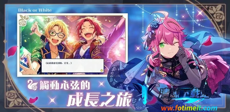 《偶像梦幻祭2》是一款超棒的全方位沉浸式偶像养成音乐手游。这里有49位风格各异的美少年,14个高颜值组合,满足你的多样喜好。你将扮演制作人,陪伴偶像成长。游戏支持全新3DLive形式,能从各角度欣赏动态偶像及细致服饰表情,打歌时还有华丽3DMV演出。多种曲风、数十首原创音乐,特邀四十多位一线声优配音,带来超豪华听觉体验。
