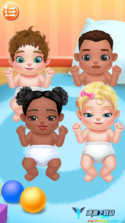 1、在本站下载安装该游戏,打开进入点击播放键,这里有四个宝宝,你要先把每个宝宝都哄开心,点击逗弄他们就行。