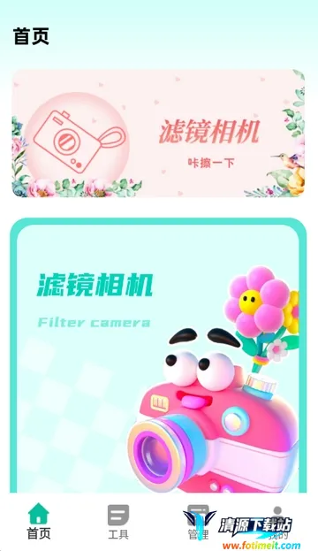 2、进入软件首页,可使用滤镜相机进行拍摄等