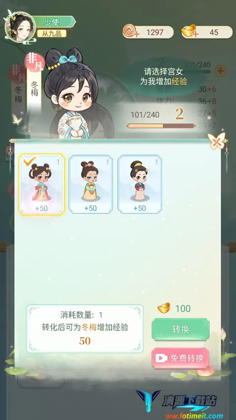 2、宫女还可以进行升级,消耗低级宫女进行转换升级。