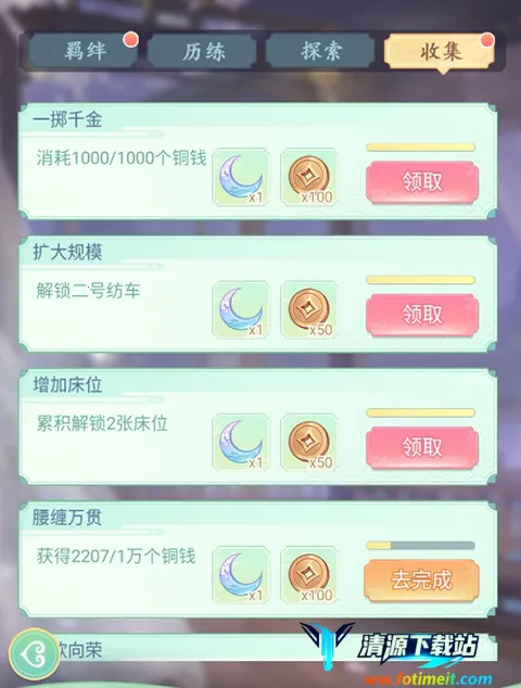 3、多样的玩法与系统:拥有建造系统,可新建纺织机、床位;采女选拔系统,能选择合适采女;宫女系统,可查看信息、升级;成就系统,通过多种方式解锁成就领取奖励;故事系统,包含主线、羁绊、支线故事,丰富有趣。