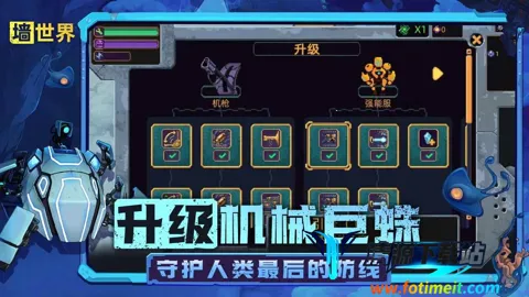 墙世界破解版内置MOD作弊菜单,融合生存、建造等元素。玩家操控机械蜘蛛在墙内冒险,采集资源、升级装备、抵御怪物。游戏玩法丰富,有多种武器和科技升级,需合理规划资源与行动,在挖矿与防御间找平衡。