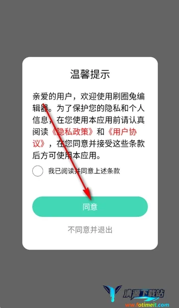 1、打开刷圈兔编辑器app,点击同意隐私政策