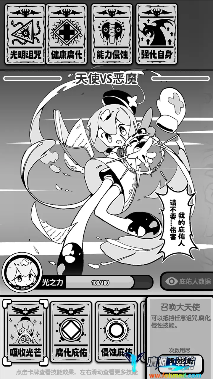 天使模拟器是一款黑白动漫画风的策略养成游戏。玩家扮演天界救赎部天使,为倒霉短命鬼提供庇护,通过卡牌组合、资源分配干预其人生轨迹,有多种职业可选,面临诸多选择与意外,需谨慎抉择。