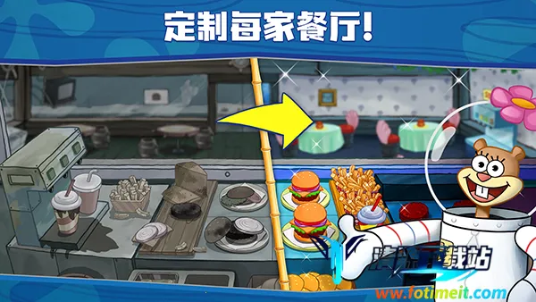 海绵宝宝大闹蟹堡王中文版由正版授权,是模拟经营手游。与海绵宝宝在比奇堡经营餐厅,有独家剧情、经典角色互动。采用模拟经营玩法,融入大量剧情,能制作同款美食,还有超自由DIY玩法。