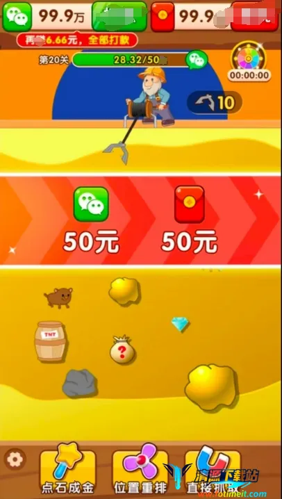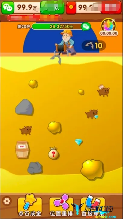 多样玩法元素:设有简单轻松的玩法,玩家操控机械抓钳抓取宝藏;宝藏种类丰富且价值不同,可解锁升级工具;还有机关道具如磁铁、炸药桶,合理利用能获更多收益;关卡难度渐升,可解锁更深矿层获取稀有宝藏。