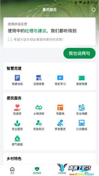 1. 提供一站式在线服务平台,涵盖多项民生政务项目,村务政务在线处理更轻松,让人们办事不求人。