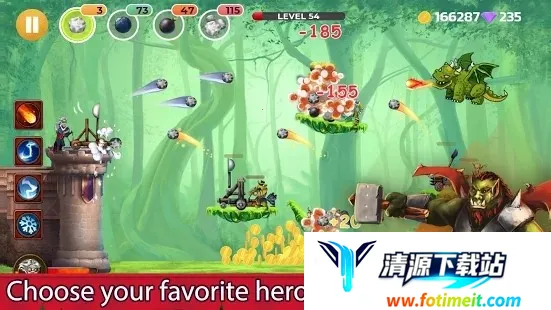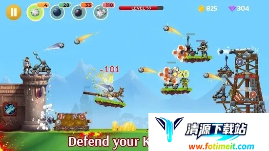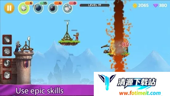3. 操作简单易上手,点击弹射器就能向敌人投掷石块或炸弹,升级可加强威力,基于抛物线原理,需准确判断和预判才能击中敌人。