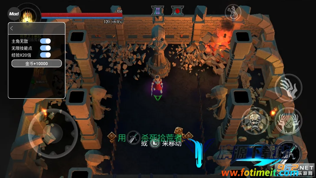 3、进入场景后,左侧摇杆控制移动,用右侧的攻击指令击败拾荒者。