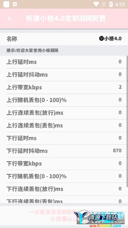 小格弱网优势众多。它无需ROOT手机,降低操作门槛。操作流程清晰,在软件首页即可查看。能随时轻松关闭弱网模拟,开启后参数实时呈现。有多种预设参数方案,可实时修改弱网参数,修改后马上能检测到效果。兼容多种安卓手机,无需手动输入参数。全新8.0版本新增更多功能,还支持全量测试参数自动保存,显著提升测试效率,适配多轮重复测试与场景复用需求,为用户带来极大便利。