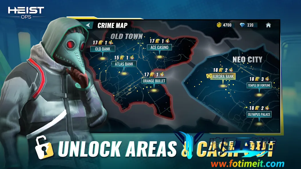 3. 多样成长玩法:可通过收集战利品解锁新英雄、升级装备,不断挑战更高难度劫案,持续获得成长与乐趣。