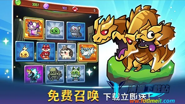 玩法上,你得合理安排魔物站位,根据战场形势随时调整策略。用战斗和闯关获得的金币钻石升级魔物。这里有多种传说怪物,像小黄龙能喷射激光和火球,龙冰冰可喷射冰焰还能冻结敌人。
