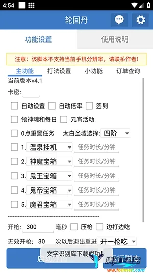 轮回丹是一款免费游戏辅助工具,含无root下载安装工具,支持多脚本。其软件内容丰富,操作简单,经严格测试,安全稳定,有强大透视、瞄准辅助等功能,能让玩家在游戏中轻松完成任务,提升体验。