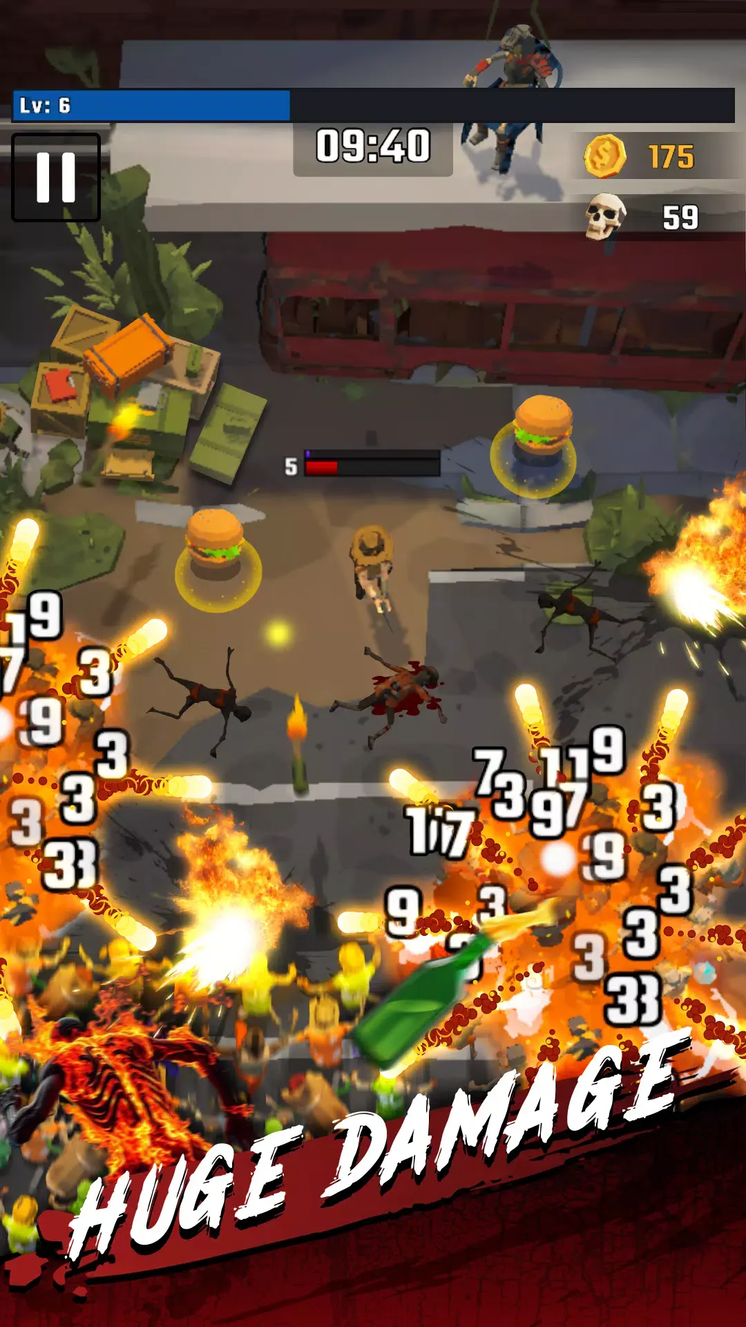 2. 丰富内容:可烧毁废弃车辆,还能收集强化道具,不断提升自身实力,增加游戏趣味性。