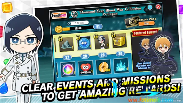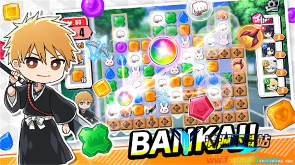 这是一款基于热门动漫《BLEACH境界》的消除游戏。游戏玩法简单,移动同色碎片3个相连即可消除,随着关卡推进还会出现各种陷阱,带来更多挑战。**角色以可爱迷你尺寸登场**,黑崎一护、石田雨龙、友哈巴赫等熟悉角色陆续亮相。成功通关可获得相应迷你角色,放置在房间内布置场景,打造专属的《BLEACH境界》世界,享受休闲又有趣的消除体验,还能感受经典道具带来的畅快消除,沉浸在游戏的乐趣之中。