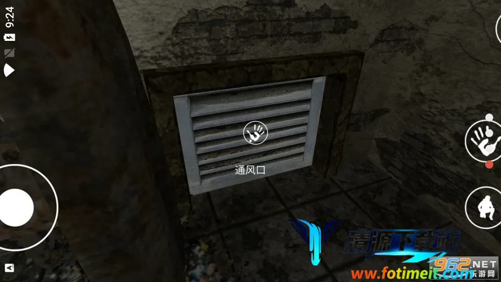 4、进入游戏,左边的按钮可以控制角色移动,右边可以控制角色蹲下,滑动屏幕可以切换不同的视角。