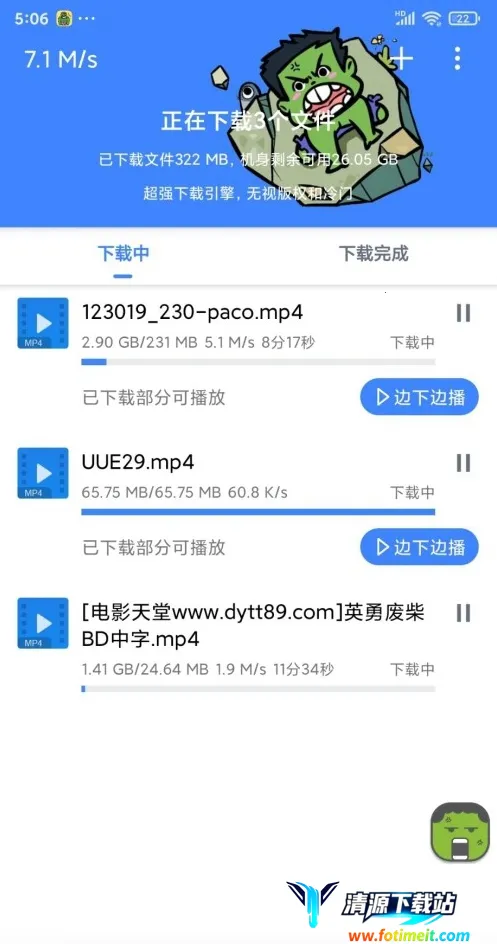 浩克下载器无限vip1.8.6是一款多功能磁力下载工具,采用极简设计,不限速且免费。支持多种链接下载方式,能快速解析种子文件,支持边下载边播放,具备多重解析、批量下载等功能,搜索快,资源丰富。