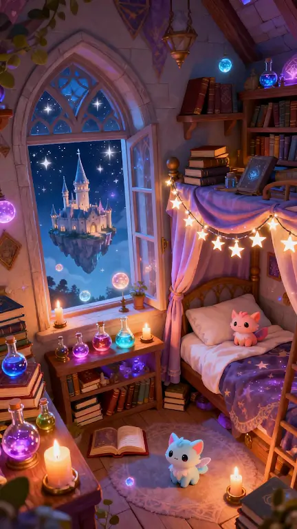 3、唯美画风与沉浸式氛围:采用柔和梦幻美术风格,画面细腻,色彩温暖。古老建筑、神秘教室、魔法物品极具艺术感。轻松音乐和自然音效,让玩家沉浸在魔法美妙氛围中。