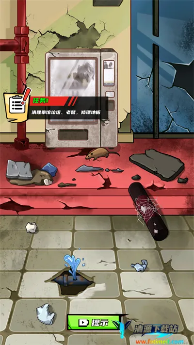 2、被赶出去之后选择经营自己的拳馆,首先将拳馆的卫生收拾一下,点击界面上的脏乱区域即可;