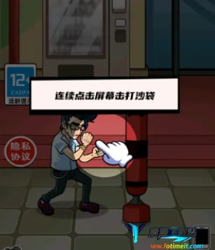 3、然后我们就可以练拳了,点击屏幕即可击打沙袋,我们首个任务是打碎8个沙袋;