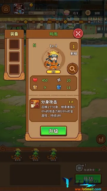 1、在游戏初期需要着重收集相同角色进行合成进化,通过集齐三个相同忍者能够实现升星突破。