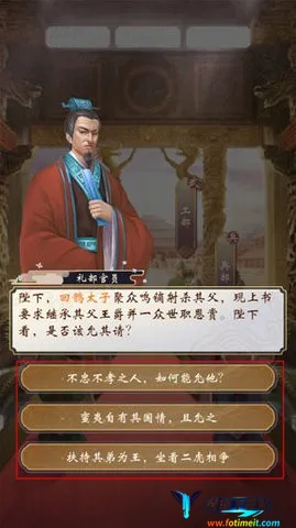 2、首先是上朝,随机点击兵部、礼部等上书奏折,根据选择来获取/减少声望、政务。
