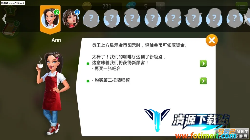 在这里,你能经营梦想中的咖啡厅。结识可爱常客,聆听他们的故事,体验独特咖啡厅故事。可调查小镇神秘事件,深入了解顾客,用回应影响剧情走向。能用200多种装饰物品设计餐厅,打造个性氛围。还能成为出色厨师,寻找特别料理。亲自制定经营策略,或高歌猛进,或徐徐发展,成为最受欢迎的咖啡厅尽在掌握。管理员工,招募培养团队,一起为利润奋斗。