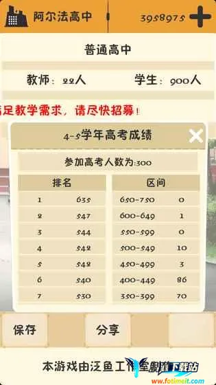 这是一个以不破产的前提下提升声望的游戏,教师声望要特级教师才给,高考就是学生考上顶级会有,(素质与考上国外大学有关,社团全点,感觉社团一点也不影响奥赛,后期点不点都是2个一等奖)。