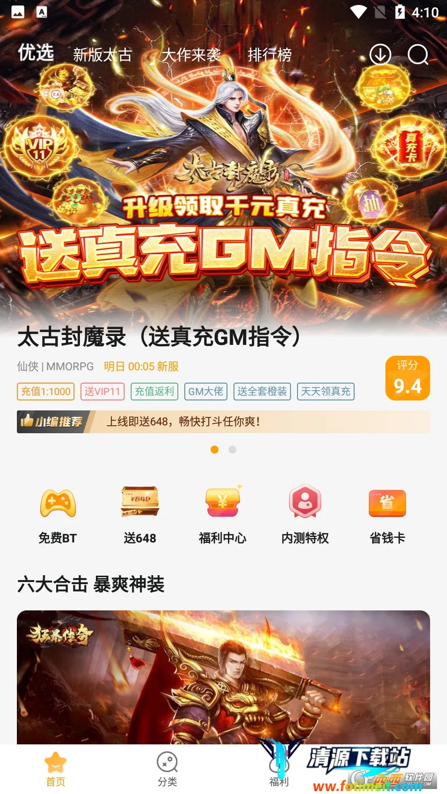 它的福利超多,能赚取游戏积分,完成任务领福利。新用户用手机登录,首页有多种游戏类型可选。分类详细,像传奇、卡牌等任你挑。一键下载安装超方便,自动适应模式。用户间能无障碍交流,一起讨论玩法。而且,这里有各种优惠活动,比如0.1折充,花很少的钱就能畅享充值648的体验,轻松当大佬,让你用更少花费获得更好的游戏体验,快来试试吧!