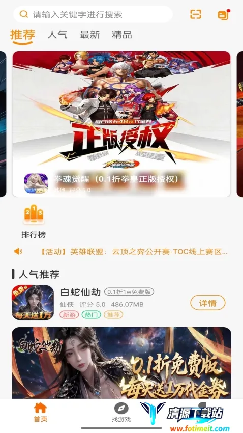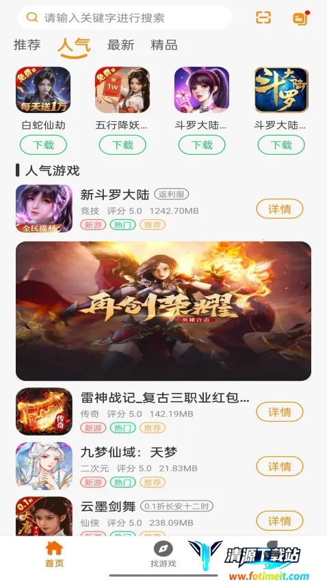 3. 首页内容清晰明了且持续扩充,设有推荐、人气、最新、精品等板块,让玩家轻松找到心仪游戏。