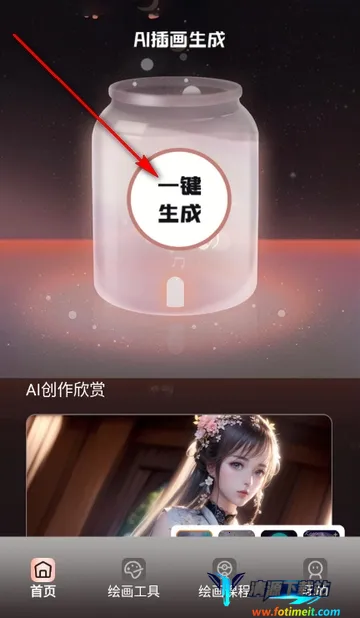 2、进入软件首页,可一键生成AI最新插画等