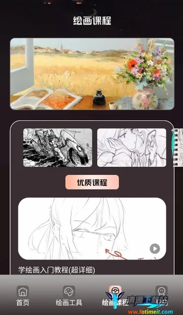 4、点击绘画课程,可学习给类绘画教程等