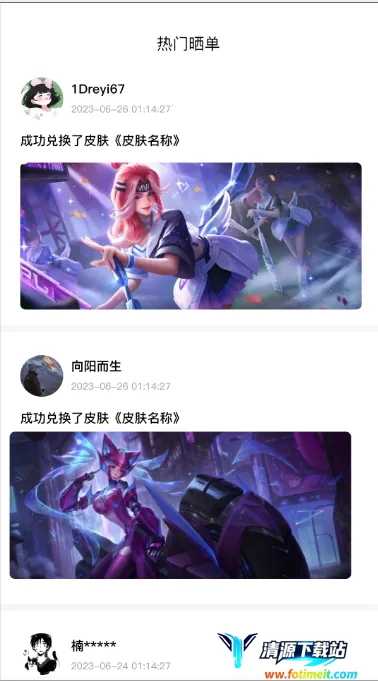 全皮大佬是一款热门游戏皮肤领取软件,覆盖多款游戏。能在线免费兑换海量皮肤,通过做任务获取,还有游戏资讯攻略。新手有福利,邀请好友可领皮肤,操作简单,资源丰富,助玩家轻松拿皮肤。