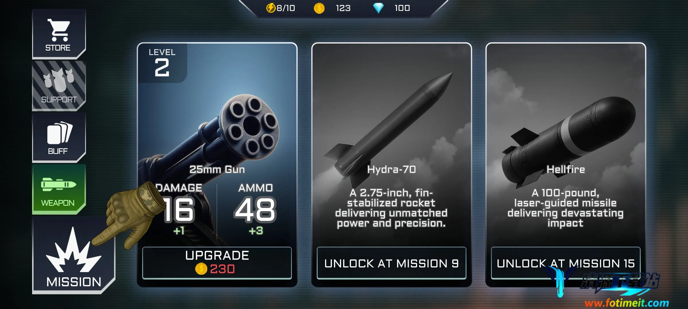 2. 强大武器库:可为无人机配备速射机枪、火箭弹和制导导弹,还能解锁升级,定制装备以契合自身游戏风格。