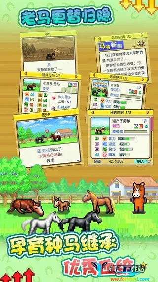 赛马牧场物语折相思版是开罗系列经营游戏,有内置菜单。玩家当农场主,培养特色赛马参赛。游戏玩法自由,场景绚丽,比赛模式多样,通过配种育马、布局牧场、经营店铺来提升实力,享受经营乐趣创造传奇。