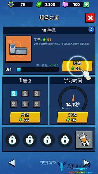 4、例如训练力量的设施,升级学费、学习时间等等;