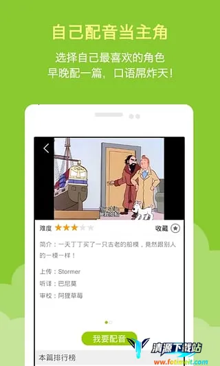 3. **全新趣味方式**:摆脱枯燥传统学习方式,走进轻松好玩的配音学习社区,通过配音练习提升英语听说能力。趣味学习,轻松提升