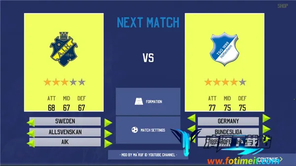 3、选择你要玩的国家以及球队,然后点击CONTINUE继续;