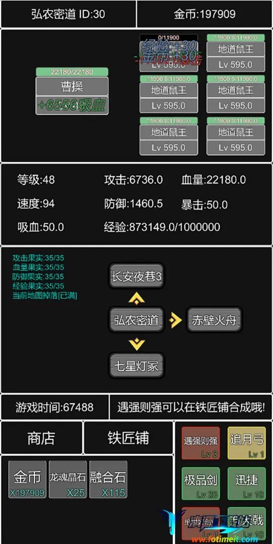 在这款游戏里,玩家能扮演曹操开启传奇人生。操作简单玩法多样,可通过多样化养成途径提升实力。能自由交易,在商店买道具打造专属武器增强角色属性。战斗以文字形式展开,依据角色属性与技能策略出招。功法技能全面丰富,可随时在线学习强化。还支持在线和离线挂机,挂机打怪获取经验资源。金币药材等资源散落各处,用途多样。通过打造装备拥有完美属性,战斗时展现强大实力,书写自己的三国传奇。