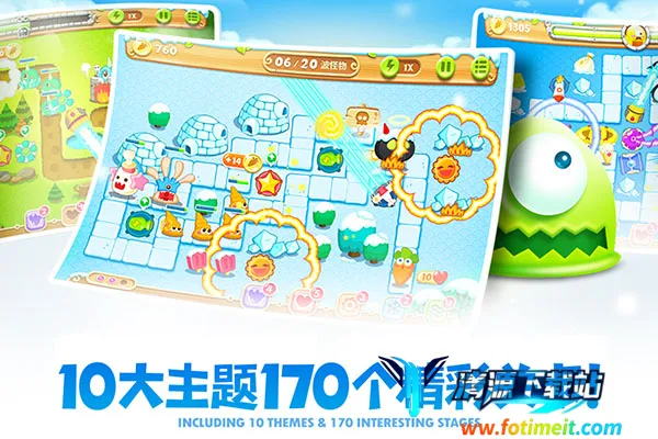 3. 丰富关卡:内置65个全新关卡,分布在4大主题,玩法经典且不断创新,无论何时何地都能开启精彩塔防之旅。