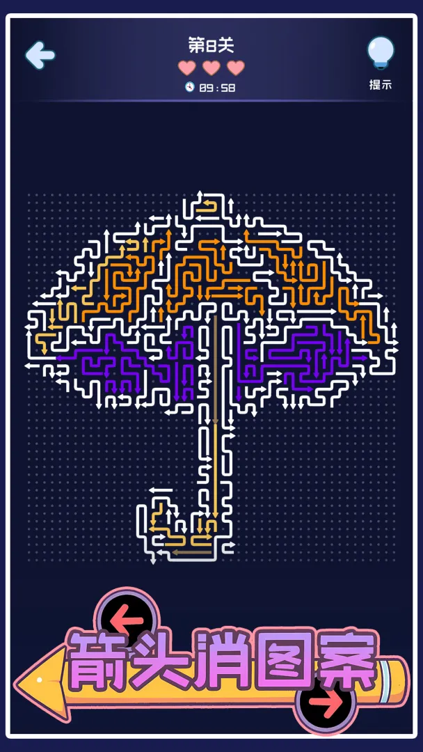 箭头消图案2026最新版本是一款休闲益智游戏,玩家点击箭头按指示方向移动以消除图案。操作简单,策略空间大,关卡丰富,画面简洁,持续优化性能并更新内容,适合各年龄段玩家打发时间和解谜。