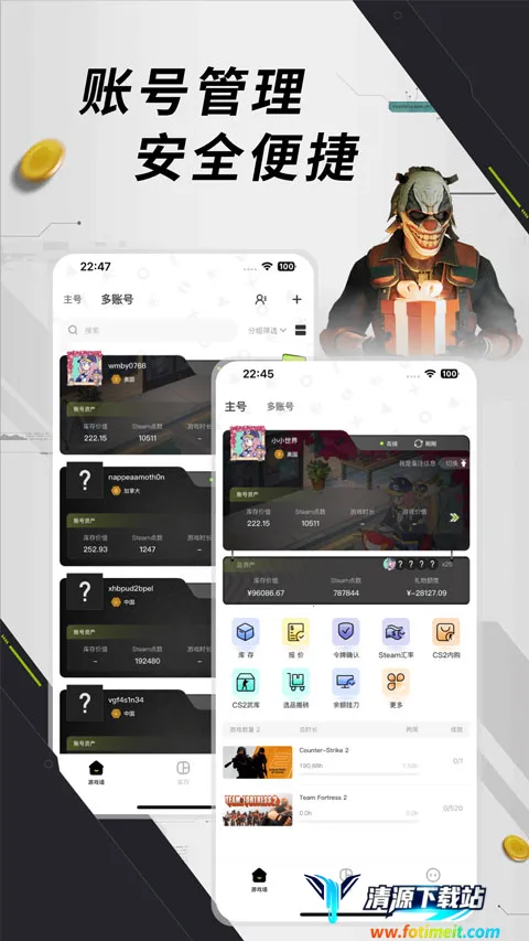如果你是Steam玩家,那元游猫app绝对是你的得力助手。它能帮你高效管理账号,轻松了解游戏数据,合理规划游戏资产与交易。通过安全授权,可方便查看账户信息、游戏时长、物品库存、市场价格及资产变化。