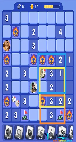 有些时候你会发现大家都统一来到了某一个方位,例如说都来到了左上角,虽然都没有站在一个格子里,但这也证明这块区域附近的雷大家已经摸透,那么你的下一步棋就需要远离这个区域了
