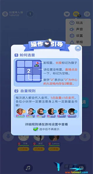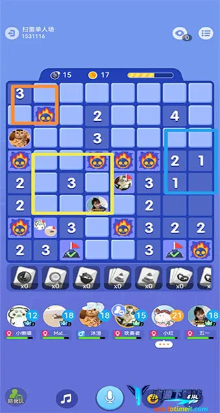 扫雷Online手机端游戏玩法简单有趣且充满挑战。它支持多人在线竞技,能与全球玩家同场PK,最多5人对战。拥有26种难度,需解锁才能体验更高难度。战斗模式让你尽享欢乐,可自由PK夺分,好友排行实时更新。能在线标记地雷,根据数字判断雷区。游戏中通过长按插旗子标记雷,选铲子图标挖方块。数字代表周围雷数,据此判断下一步。玩家还能通过多种策略防止被平分,如远离人多区、深推等,多种玩法让你成为扫雷大神。